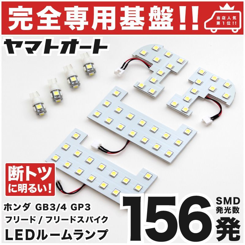 - ◆フリードスパイクハイブリッド 前期 GP3【専用設計156発】 LEDルームランプ 8点 パーツ T10 ポジション ナンバー FREED ホンダ