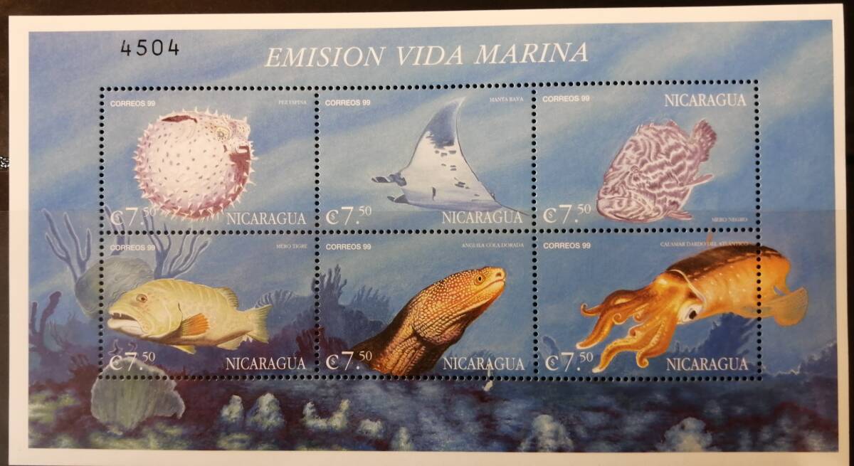 - ニカラグア 海洋生物(6種ミニシート) MNH
