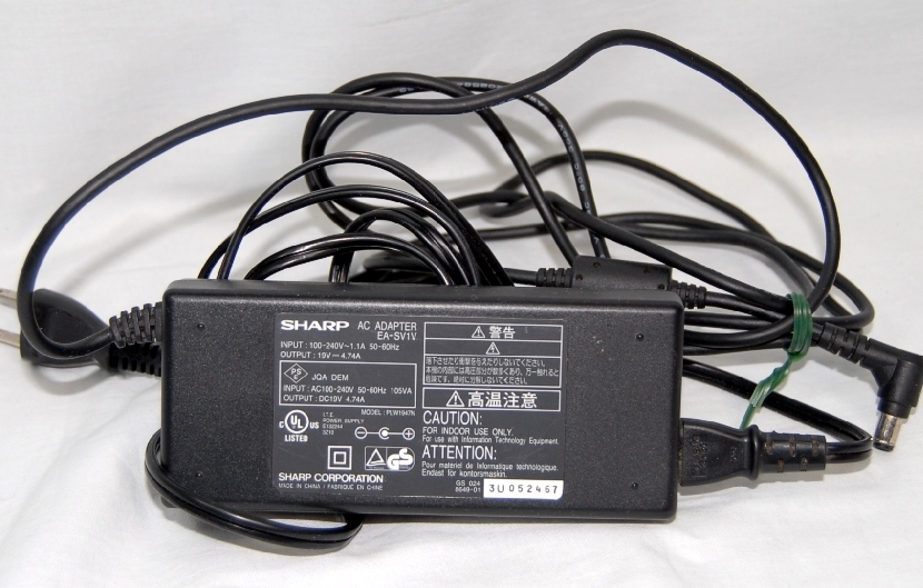 - ◆◇ACアダプタ SHARP 「EA-SV1V」 19V4.74A♪通電確済、メガネケーブル付◆レターパック600円◆