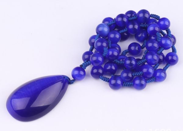 > 海外発送 人造石 キャッツアイ 猫目石 Cats eye ネックレス ペンダント48/22/12mm 玉径8mm 長さ約40㎝ ブルー