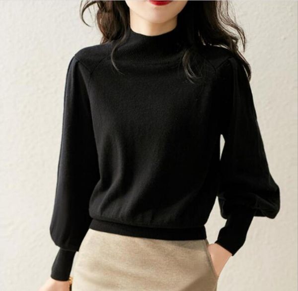- 新入荷 / / エレガント おしゃれ ニットセーター 気質大人 20304050代 ハイネック カシュクール ニット トップス / 黒