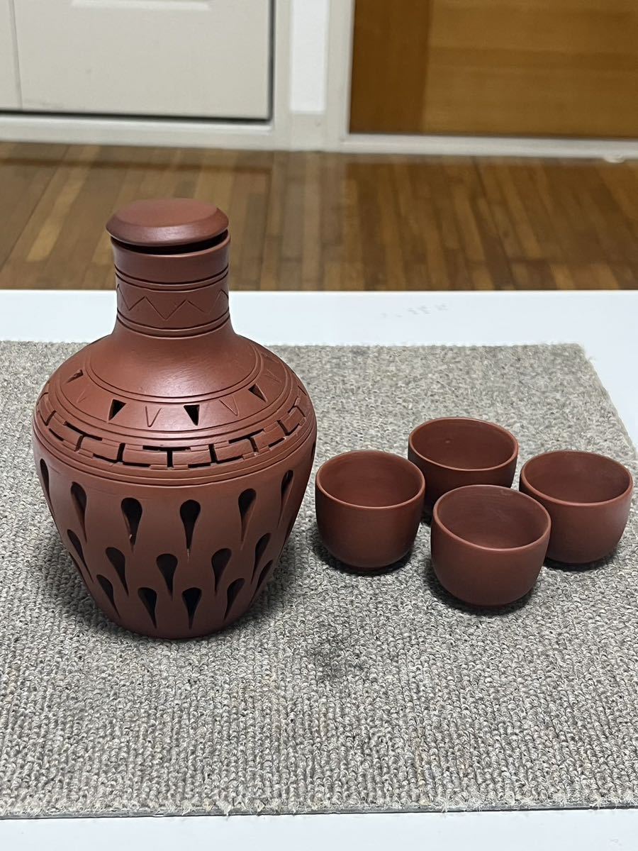 - 中国美術 中国宜興 朱泥 煎茶道具 紫砂 熱燗 徳利1 猪口4客茶道具
