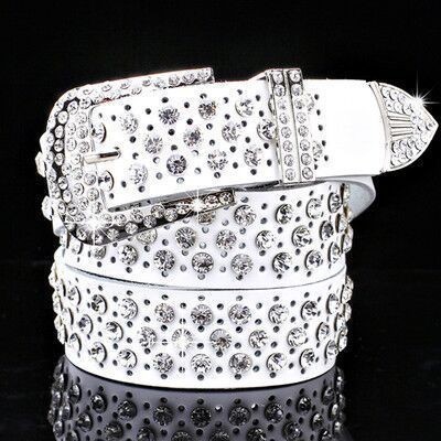 - LDL430# ベルト パンチング×ラインストーン 定番バックル (ホワイト)