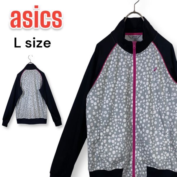 > asics アシックス ジャージ ジャケット レディース Lサイズ 水玉 ドット柄 ロゴ刺繍 おしゃれジャージ