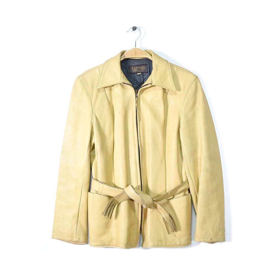 - 【送料無料】50s W.B.PLACE & CO. ヴィンテージ レザージャケット 鹿革 ディアスキン ベルト付き サイズM相当 古着 @DB0013