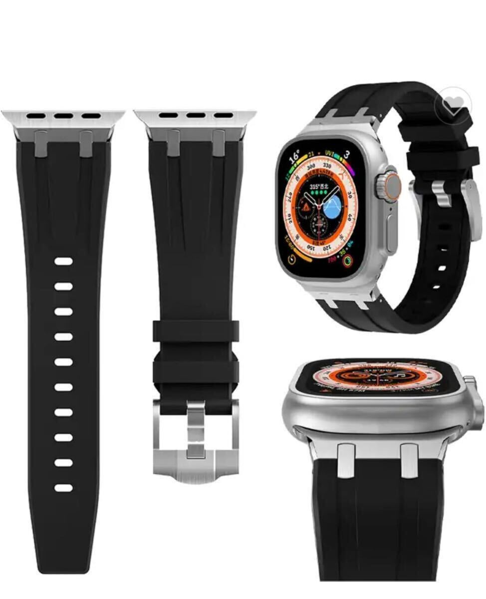 - Apple Watch バンド 41/40/38mm対応共通 ラバーベルト ステンレス鋼アダプター シリコン シリーズ 9 8 7 SE 6 5 4 3 urtraに対応黒