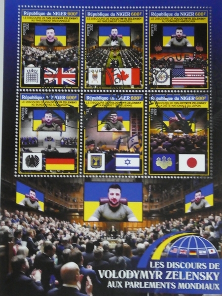 - ニジェール切手『ウクライナ戦争』(ゼレンスキー演説) 6枚シート