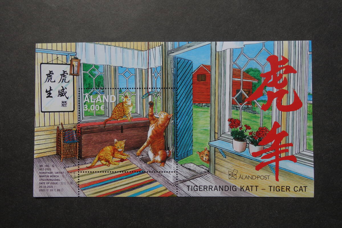 - 外国切手:オーランド切手 「年賀〈寅〉」(トラネコ)小型シート 未使用