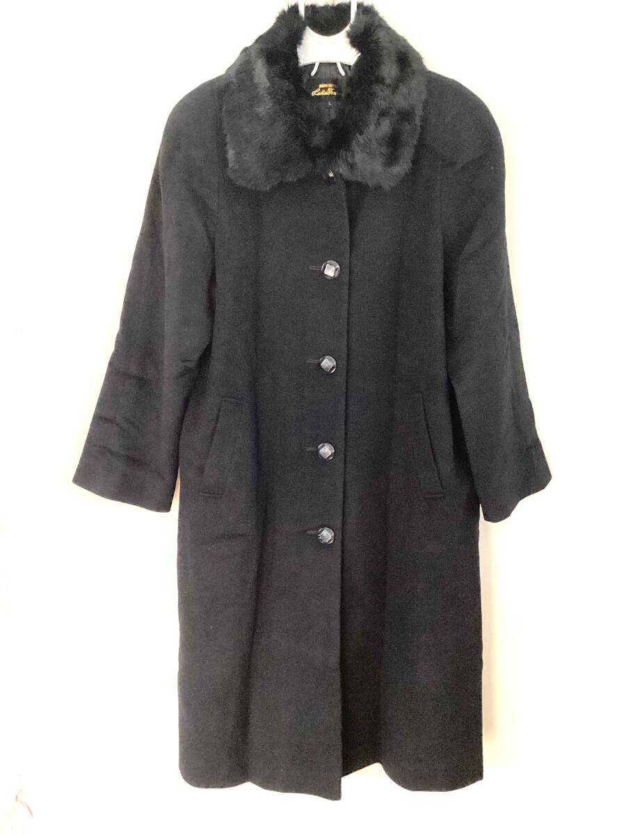 - M18 新品未使用 カシミア30% コート L 黒 ファー取外可 毛70% カシミア30% Ladies Fasion