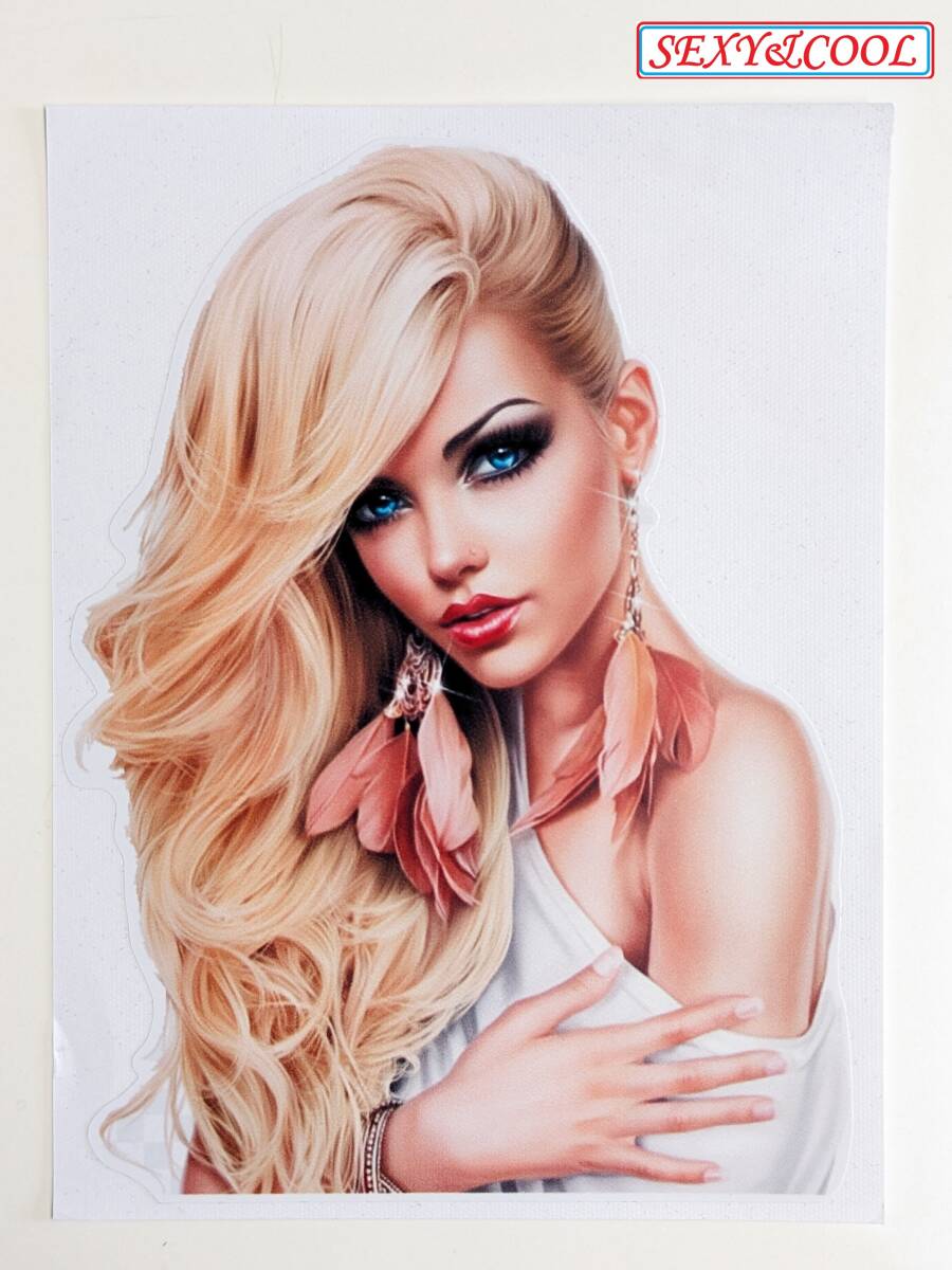 > 【日常 ②セクシー&クール顔上半身 162㎜x123㎜】アート 車★レトロ セクシーガール ピンナップガール ステッカー ボード・ギター
