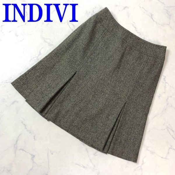 - INDIVIインディヴィプリーツ入りツイードスカートグレーカジュアル 切り替えデザイン ポケット無 40 C9042