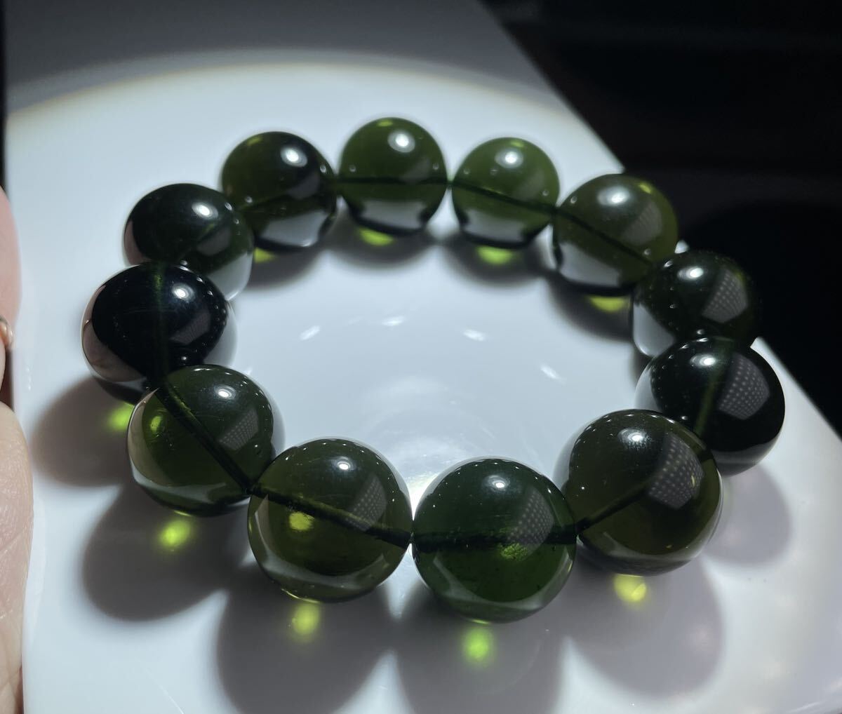 - 家宝級!最高グレード 天然モルダバイトブレスレット18〜20mm 鑑別書付