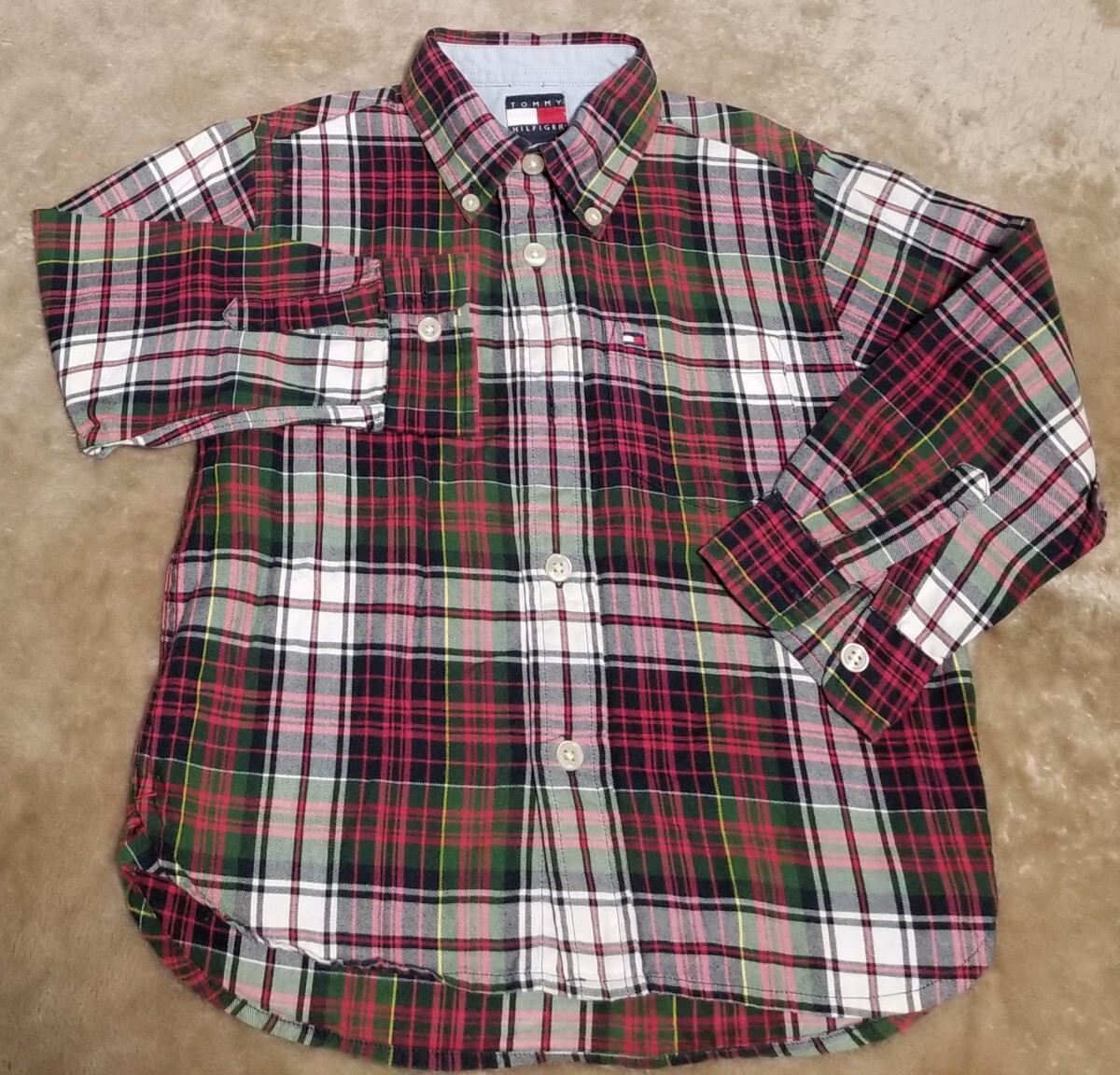 - TOMMY HILFIGER トミーヒルフィガー 4歳 100-110cm ロゴマーク刺繍入 長袖シャツ チェック