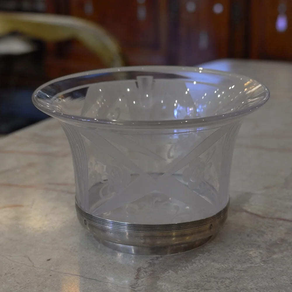 - 【アールデコ ガラス器 竹梅文様】フランス置物 純銀刻印シルバー 彫刻グラヴュール クリスタル製 モダン インテリア パリ