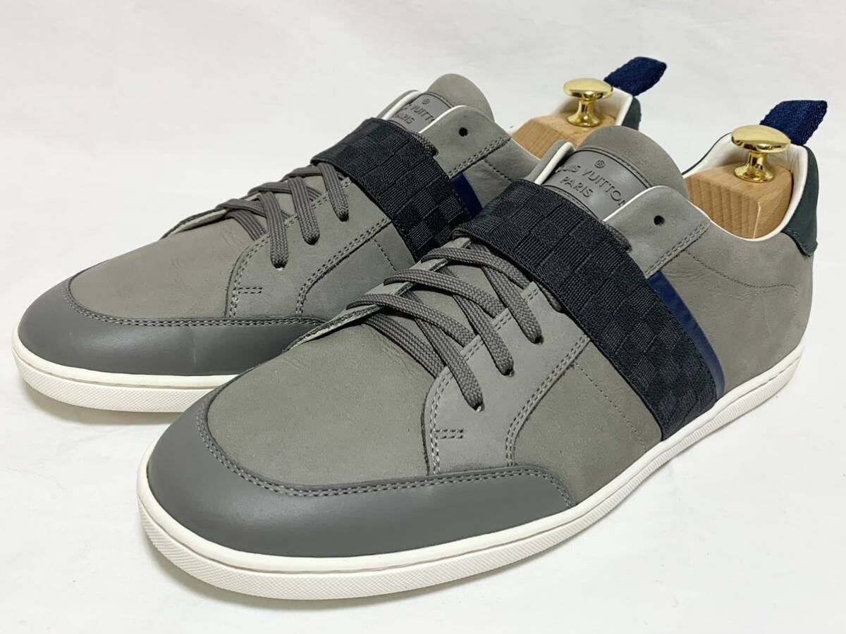 > 希少 超美品 ルイ ヴィトン LOUIS VUITTON ダミエ LVロゴ レザー ファブリック ベルクロ スニーカー 靴 メンズ シューズ 7 1/2 26~26.5cm