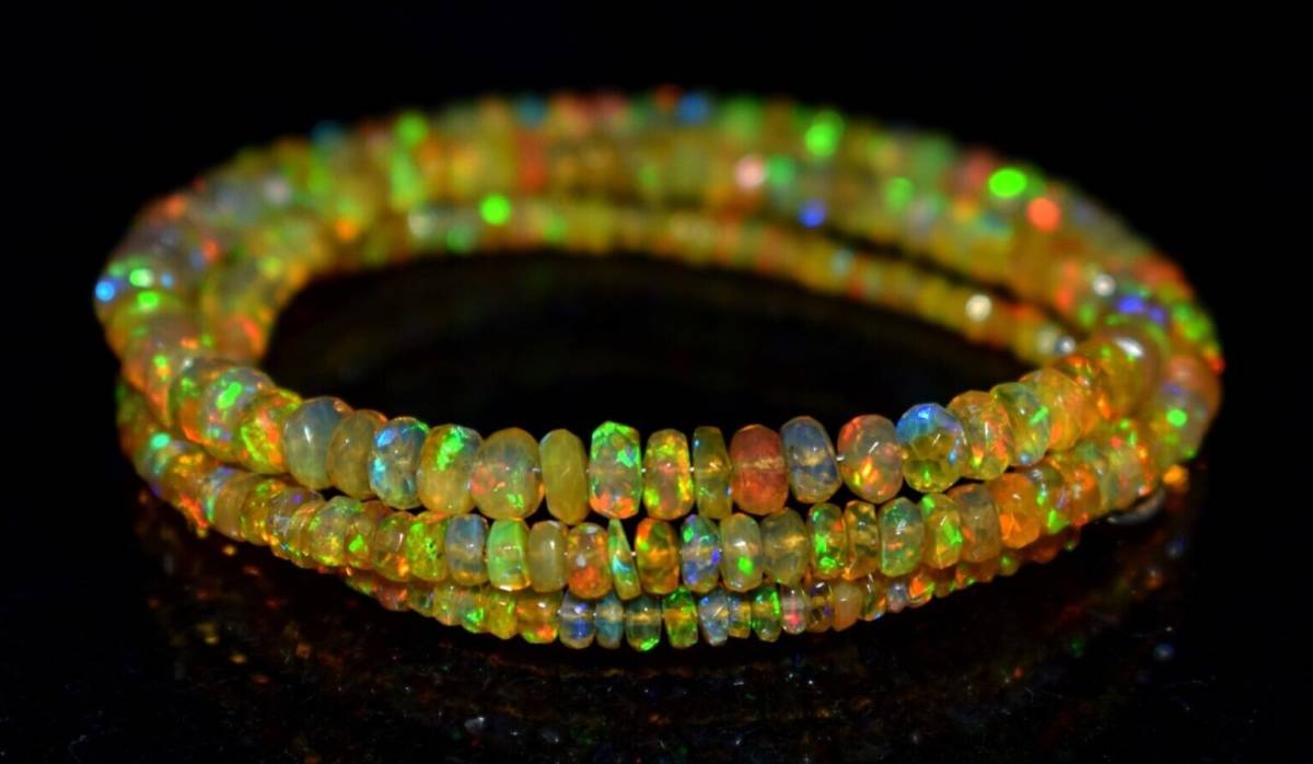 > オパール ネックレス すぐにお届けできます。★★★特上ナチュラルエチオピアファセットオパール多面カット高級ビーズ使用 約41㎝