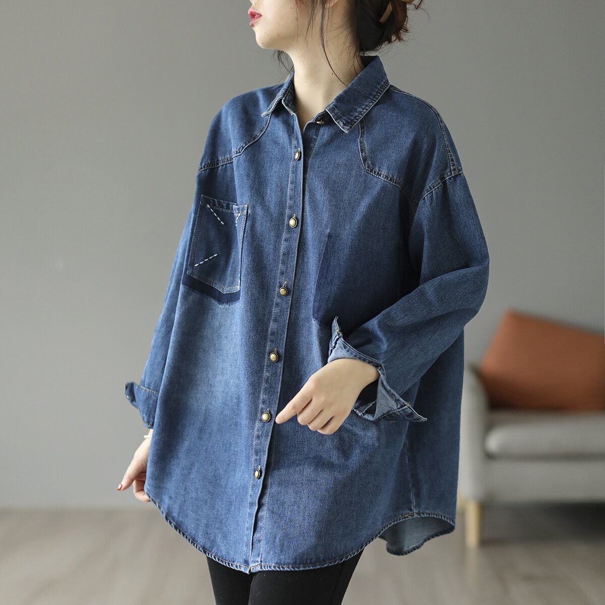 - 人気新品* レディース デニムシャツ 上質シャツ 長袖 トップス 前開き カジュアル オフィス 大きいサイズ 着痩せ*2XL