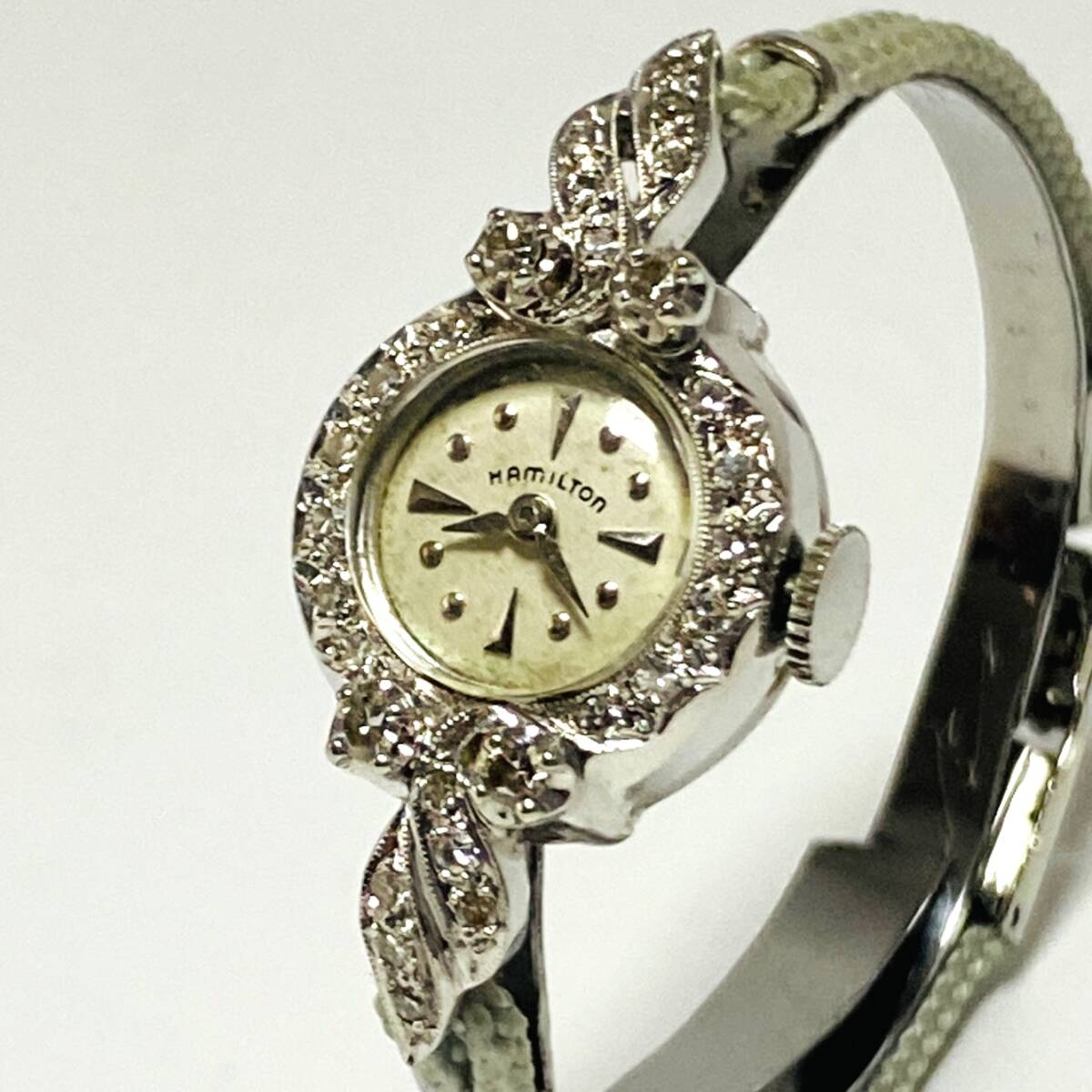 > 【高級時計ハミルトン】Hamilton 14K 24ダイヤ 手巻き 腕時計 レディース ビンテージ ブレスレット カクテル ウォッチ クリスタル