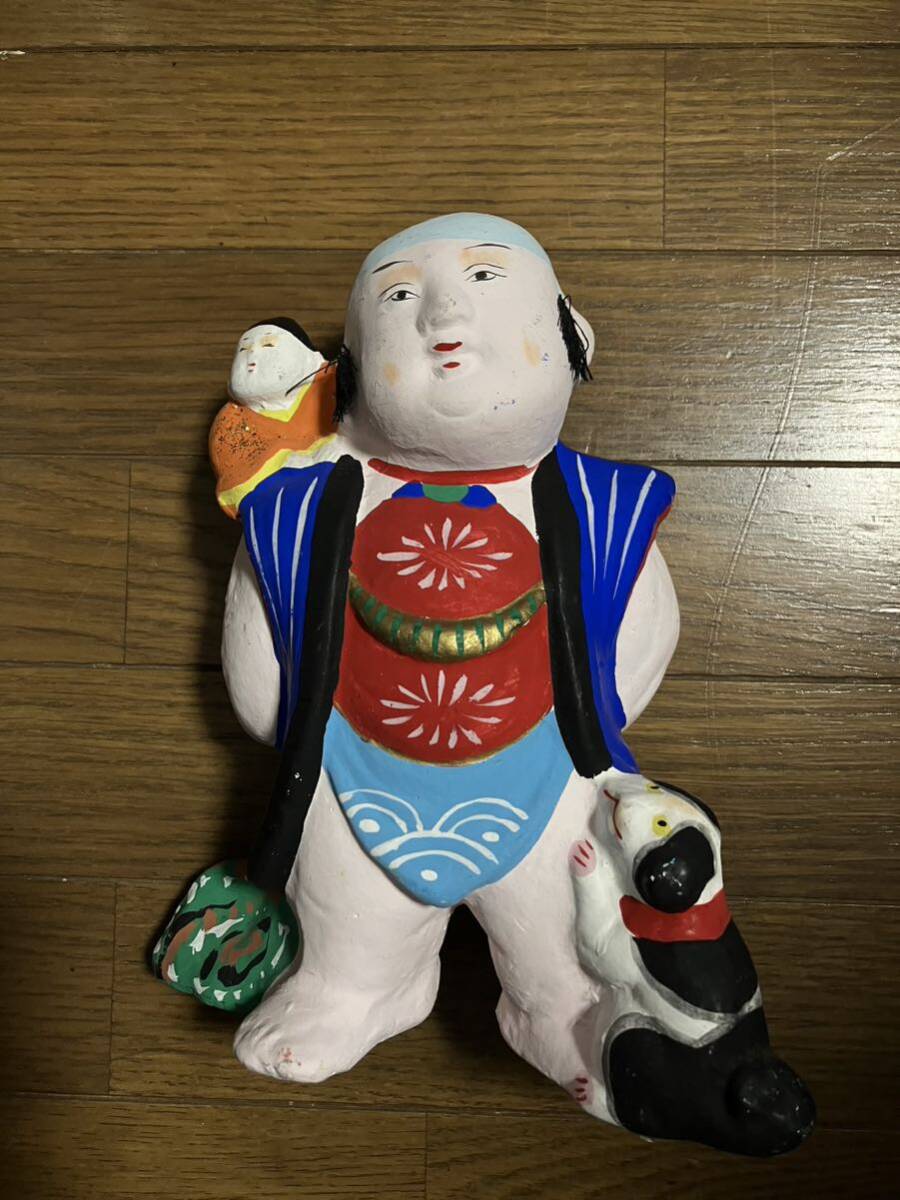 - 070805 保管品 伝統郷土玩具 土人形? 『赤ちゃんをおんぶした腹かけをした童子』