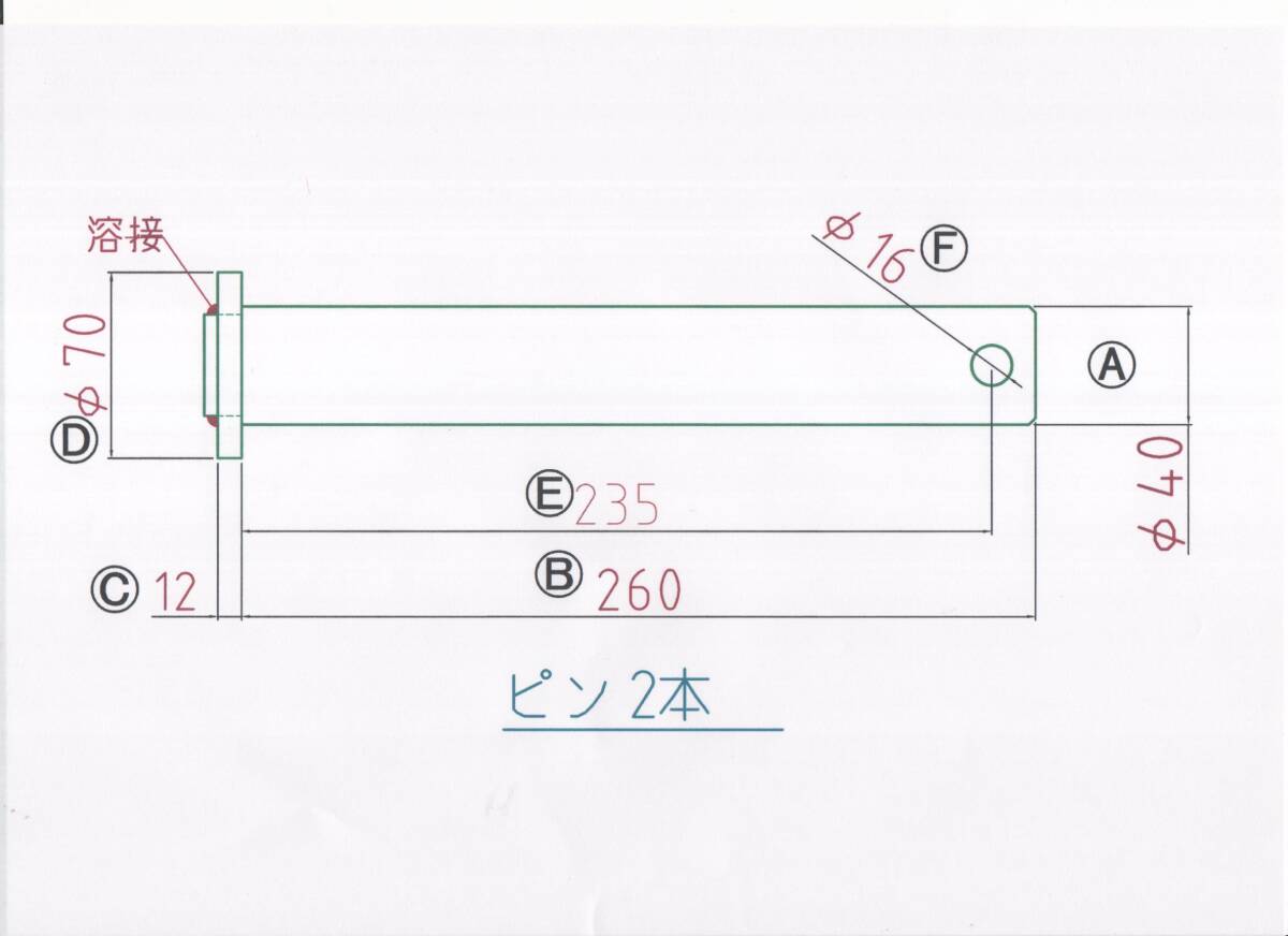 - NO 1758 φ40用 溶接ツバ下260mm バケットピン 重機用 2本1セット