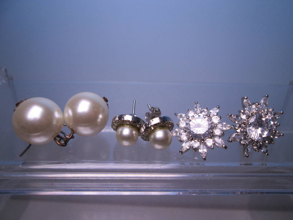 - ☆パール/ラインストーン他 デザインピアス 3点