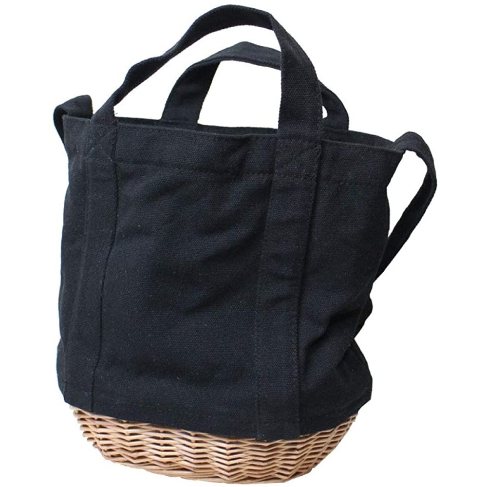 > 天然素材「柳」とキャンバス生地 2WAYショルダーバッグ ブラック Sサイズ 24×17×高さ27cm 実用的で使いやすいナチュラルなデザイン