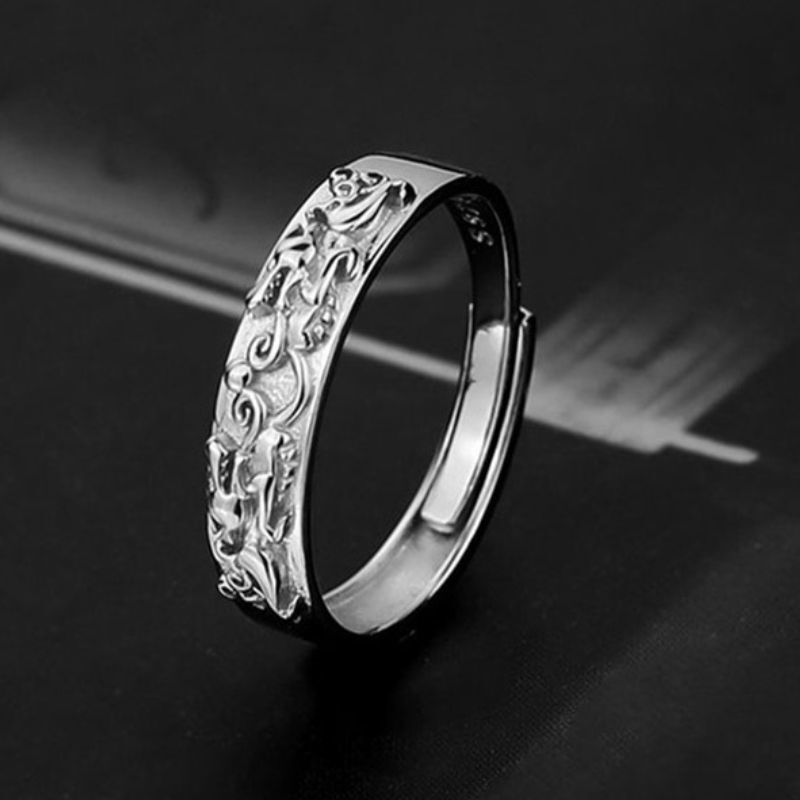 - メンズ 指輪 シルバー フォークリング オープンリング 和柄 シンプル きれいめ おしゃれ 調節可能