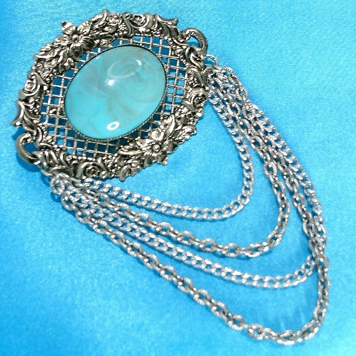 - 送料無料)ビンテージ☆青瑪瑙 チェーンエンブレム☆アンティーク ブローチ A23637
