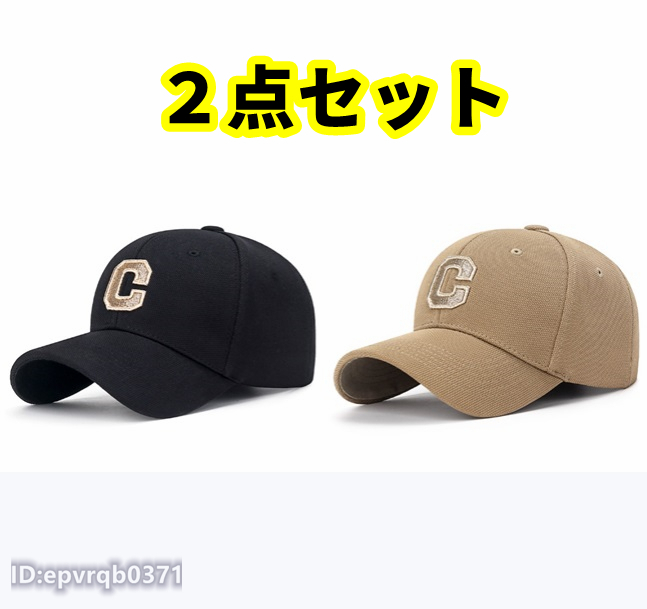 > 2点セット◇野球帽 新品 メンズ 刺繍 キャップ 英文字 帽子 キャスケット フリーサイズ 調節可能 黒/カーキ