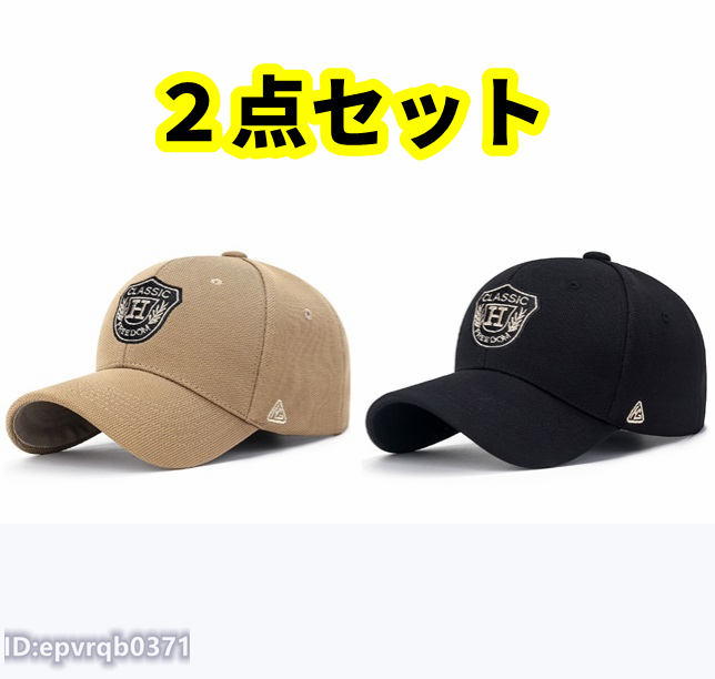 > 2点セット※新品 野球帽 メンズ キャップ キャスケット 刺繍 帽子 フリーサイズ アウトドア 調節可能 カーキ/黒