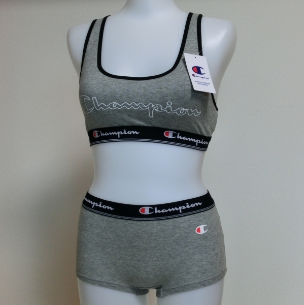 > 【L】 Champion チャンピオン グレー杢 スポブラセット スポーツブラジャー+一分丈ショーツ 0587Ex カップ付き 綿混