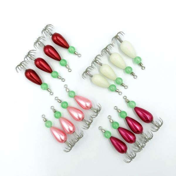 - 103454 シンプルな構造 違和感を与えにくい ミニスッテ 47mm 4色×4セット オモリ無し 傘型フック ケンサキイカ スルメイカ ヤリイカ