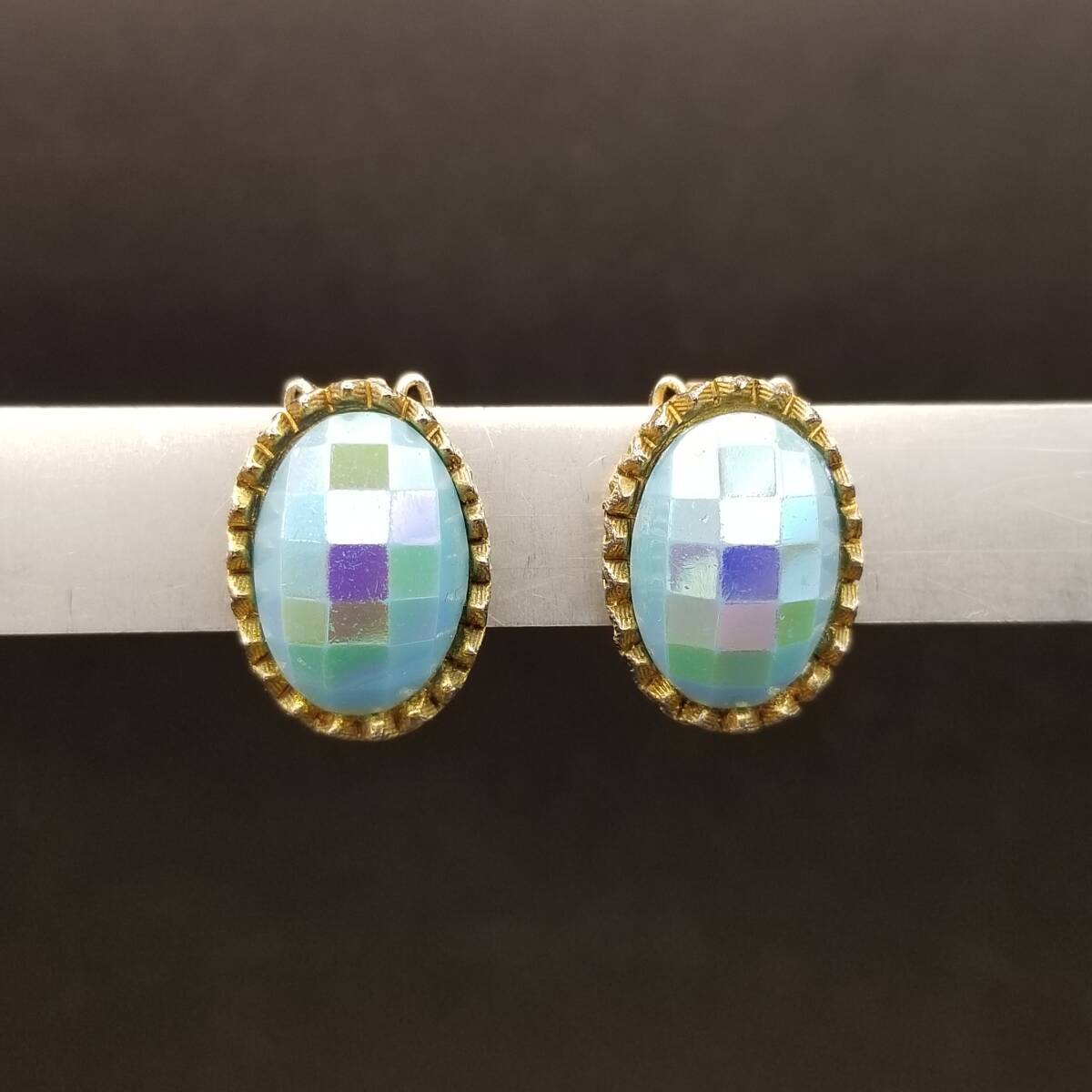 - 1960s 1970s ライトブルー オーバル オーロラ クラシック デザイン エレガント ヴィンテージ ピアス イヤリング 14Y-U