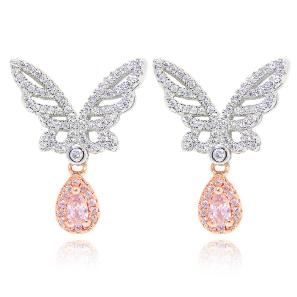 - 最高級の逸品 光輝燦然 レディース 豪華 ジルコニア バタフライ レディース CZピンクダイヤモンドピアス Gold Plated 限定 イヤリング化可