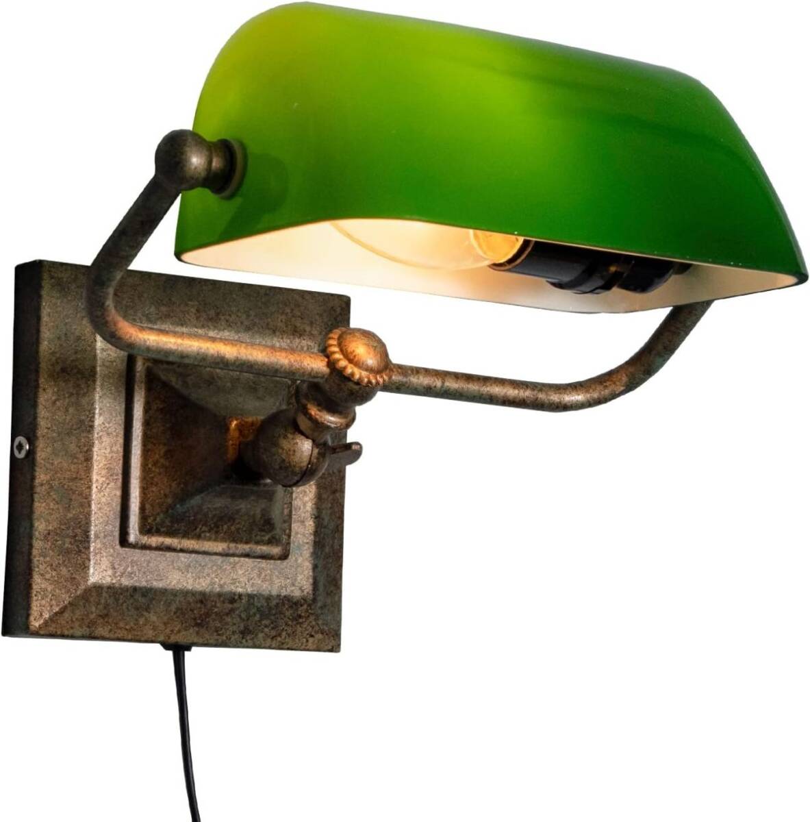 - Vill-age バンカーズランプ ブラケットライト 工事不要 コンセント式 照明器具 LED対応【グリーン 白熱電球付属】