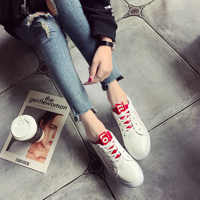 > 送料無料★即納 新品 べロにアクセント シンプル ローカット スニーカー ホワイトスニーカー レザースニーカー★39/赤