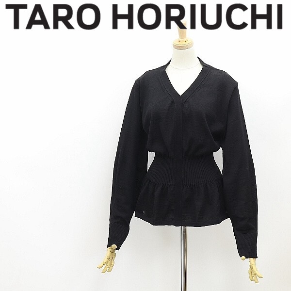 - ◆TARO HORIUCHI タロウ ホリウチ ウエストマーク ギャザー ウール ニット トップス 黒 ブラック F