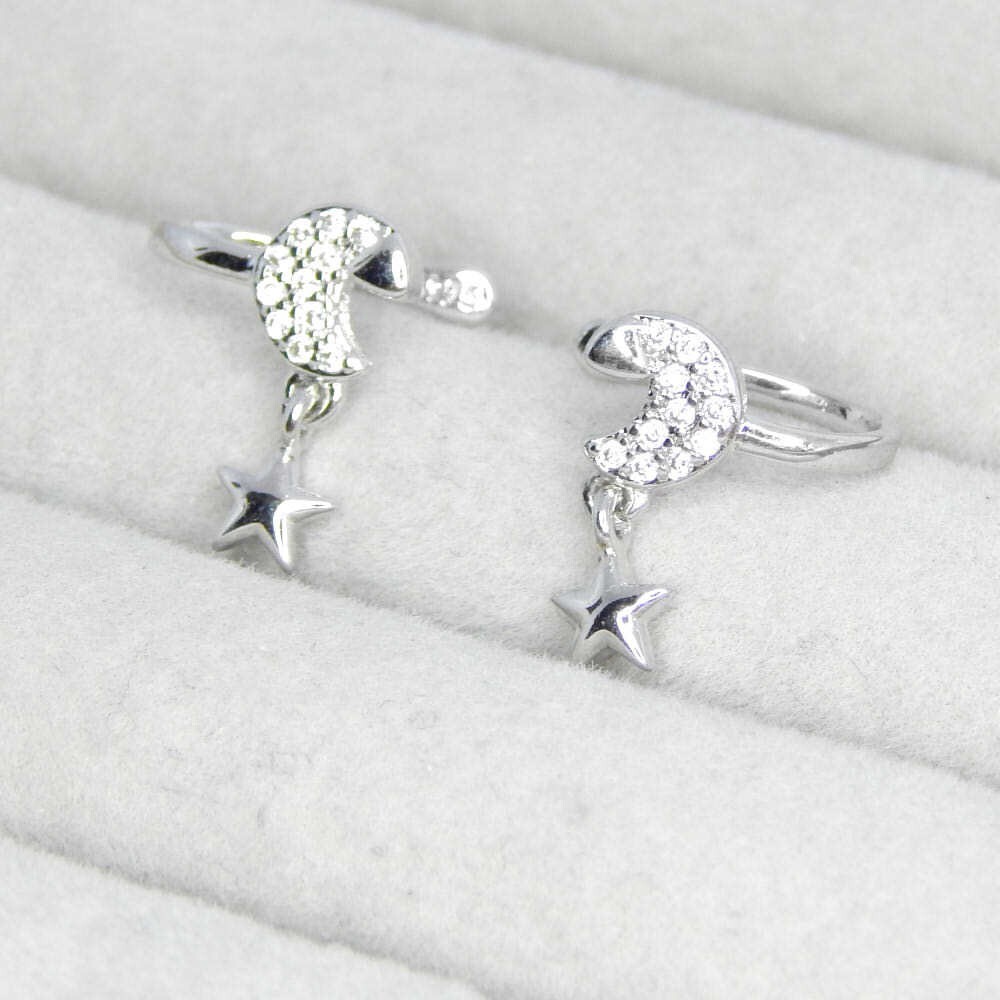 - 再入荷★新品★送料無料 揺れる星 9連CZダイヤモンドイヤーカフ イヤリング プラチナ仕上 シルバー925 レディース ジルコニア アクセサリー