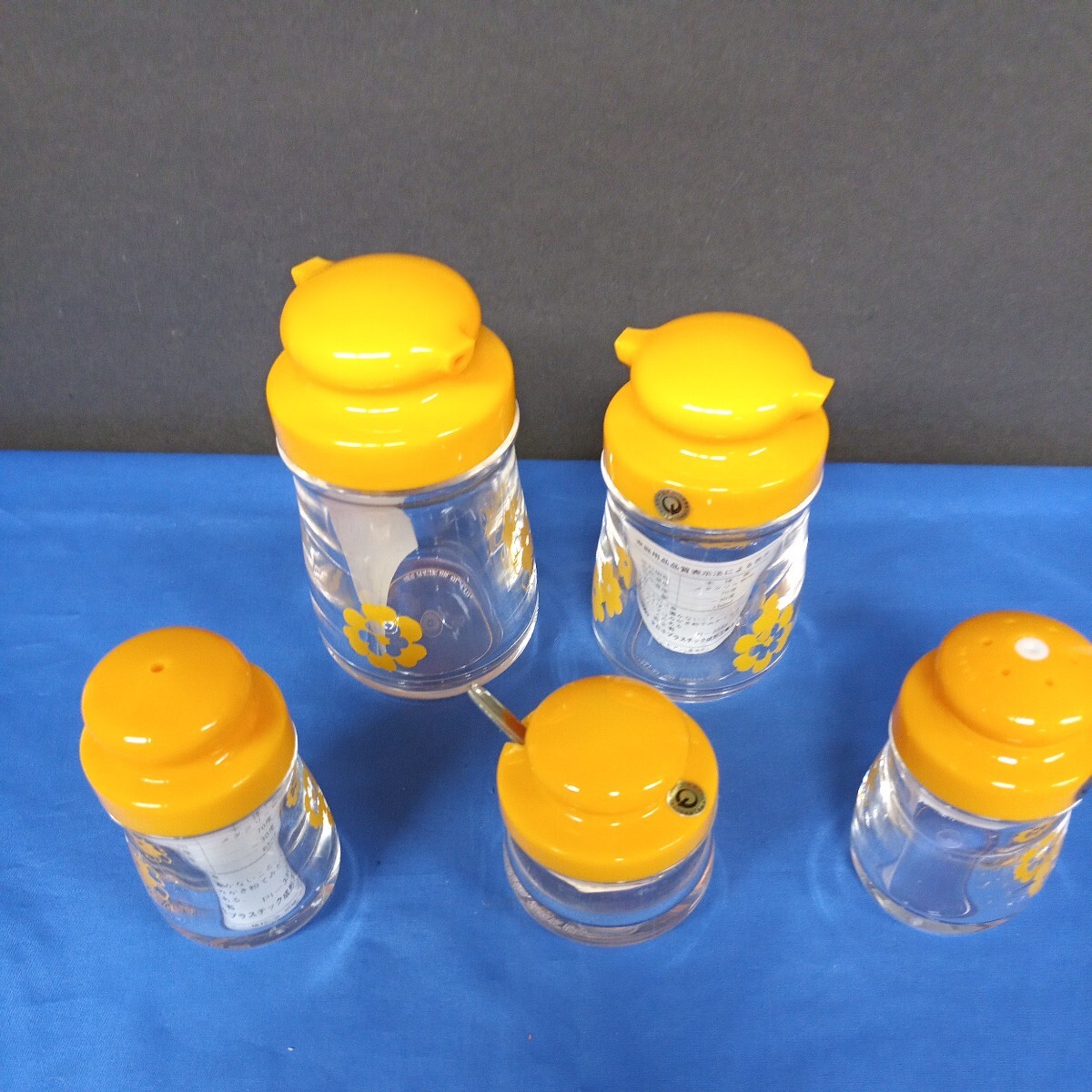 - 昭和レトロ■トレビアン 花柄 調味料入れ 5点セット(醤油さし ソースポット 楊枝入れ 塩コショウ入れ からしいれ) 容器 レトロポップ