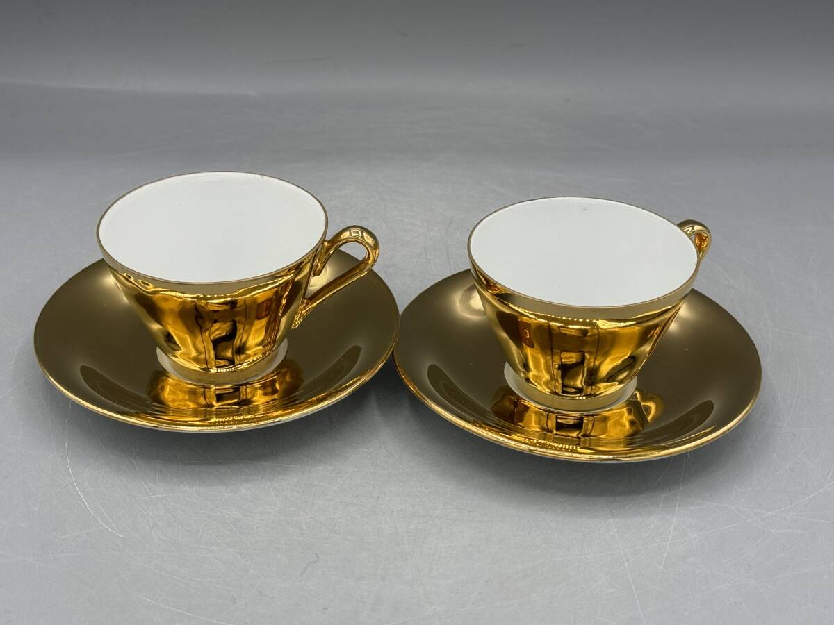 - 里帰り オールドニッポン 2客 ゴールド デミタス カップ ソーサー (100)
