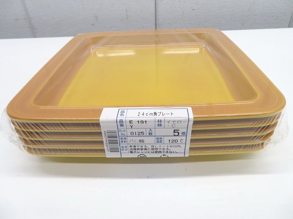 - G644未使用品◆メラミン◆角プレート5枚セット 24cm E191Y イエロー・C 栃木 宇都宮 中古 業務用 厨房機器