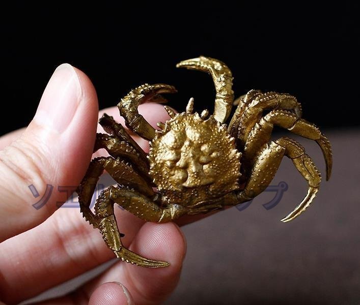 - 特選 蟹 純銅 実心 黄銅 彫刻 茶寵 置物