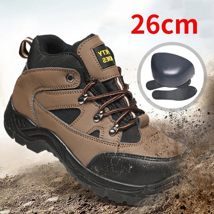 - メンズトレッキング アウトドアシューズ 安全靴 釘踏み抜き防止 鋼鉄先芯 スニーカー ブーツ メンズ 靴 耐油 防滑ソール 厚底 26cm