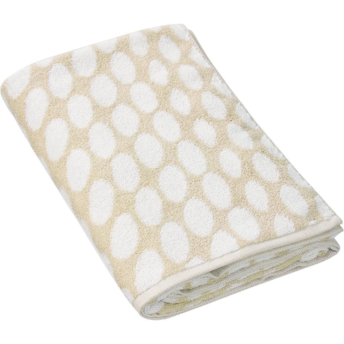 - コットン100% ジャガード織りでポップなデザインの 今治バスタオル 120×58cm モダンな水玉模様 ベージュ