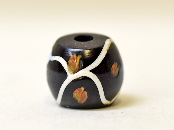 > ●わくわく とんぼ玉★得割! ANTIQUEヴェネチア黒地に白線のラトルスネークビーズA 蜻蛉玉 トンボ玉 アンティークビーズ【Z23037A】