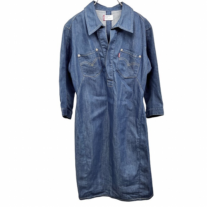 > Levi's Engineered Jeans プルオーバー デニムシャツ ワンピース スリムフィット サイドファスナー 7分袖 綿×ポリ M ブルー レディース