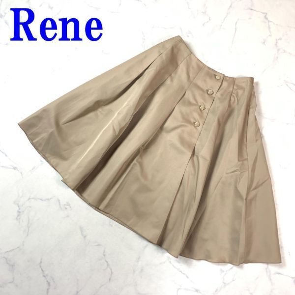 - ルネ ロングスカート フレア デザインボタンRene 裏地有 ベージュ 34 C9701