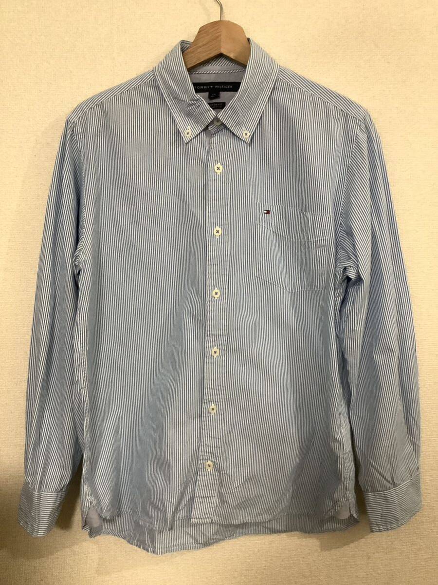 > TOMMY HILFIGER トミーヒルフィガー ボタンダウンシャツ ストライプ柄シャツ コットン ブルー セレクト メンズ 古着