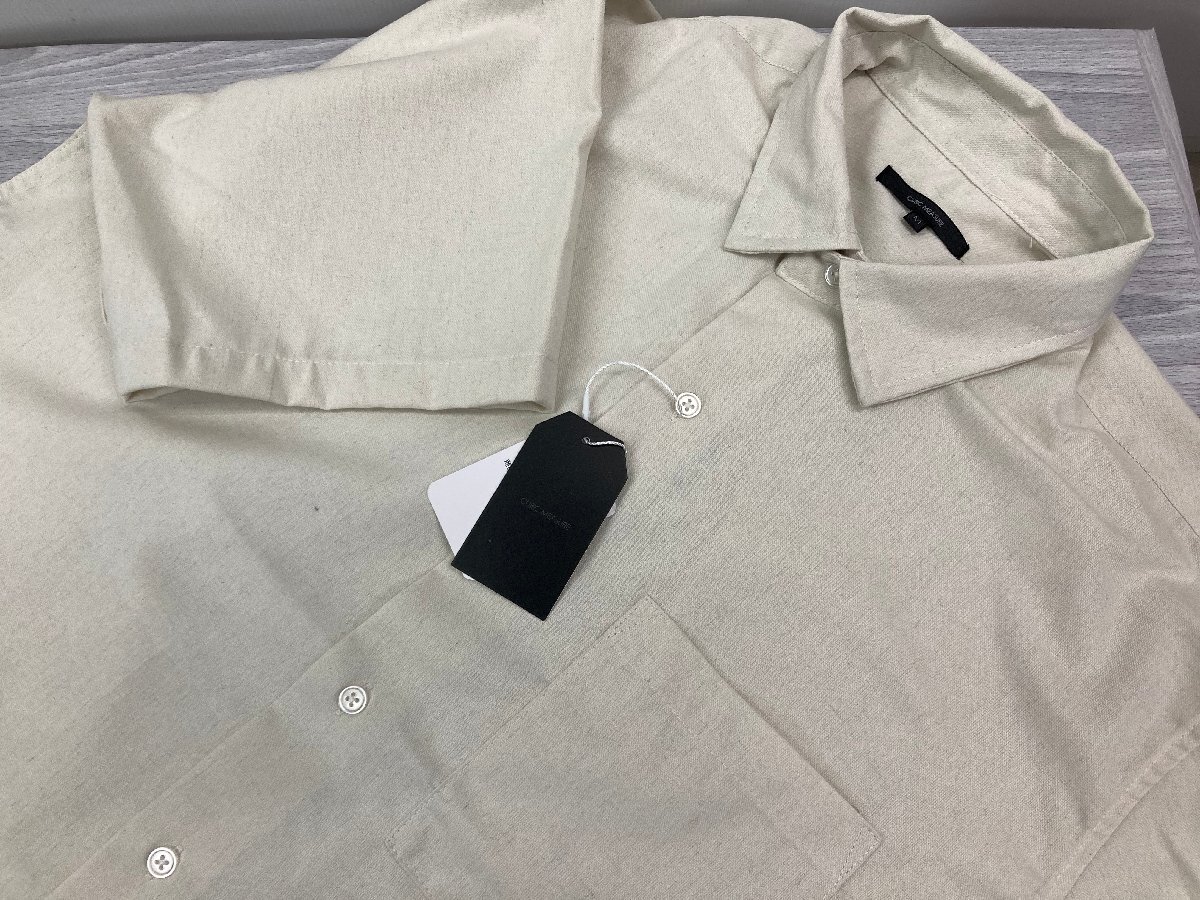 - 半袖シャツ シャンブレー 平織綿布 大き目サイズ ルーズフィット M表示 L相当 アイボリー cubic measure★未使用格安!