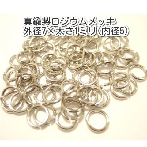 - 横浜最新 アクセサリーパーツ 真鍮製ロジウムメッキ 丸カン 10g 外径7×太さ1ミリ(内径5ミリ)パーツ部品卸し送料180円ポイント消化1
